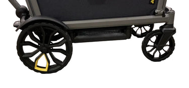 All-terrain wagon with adjustable push handle features 2 seats and compact fold. Perfect for your family's next adventure.