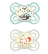 MAM Perfect Night Pacifier, 0-6 Months, Blue Raccoon/Ivory Fox