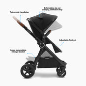 Mompush Ultimate 2 Baby Stroller with Bassinet, 2024, Black with Black Frame