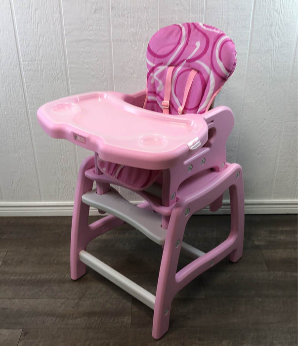 "This awesome high chair is all you will need as your baby grows. It converts back and forth to a full size high chair to a play table. "