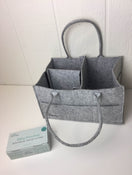 "Keep your baby safe with this set of four outlet covers. Simply screw on and your curious kid can’t stick anything in the socket. Also includes a cute diaper caddy great for the aforementioned diapers, clothes, wipes, diaper cream and anything else you may want to move from room to room."