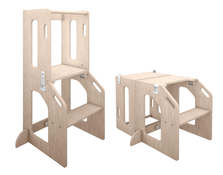 Busy Kids Toddler Tower Kitchen Stool + Art Desk, Natural