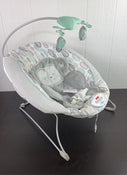 "Wind your baby down in this comfortable bouncer with calming vibrations and soothing music. The plush seat fabric is soft and gentle on baby's skin, and the monkey design adds an adorable touch of whimsy."