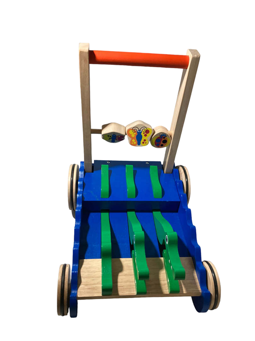 "This adorable wooden walker is so much fun! The three alligators take turns opening and closing their mouths with an irresistible clacking sound each time your little one takes a step. Solid wood construction that is built to last. Recommend for 1 year and up."