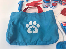 "Give young animal lovers everything they need to examine and treat pretend pets! This collection for aspiring veterinarians comes with accessories galore including a reusable examination checklist. stores in a handy tote bag, so little vets can make house calls!"