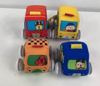"Pull back one of the soft vehicles--then release to see it zoom off across the floor! Helps to develop fine motor skills and hand-eye coordination!"
