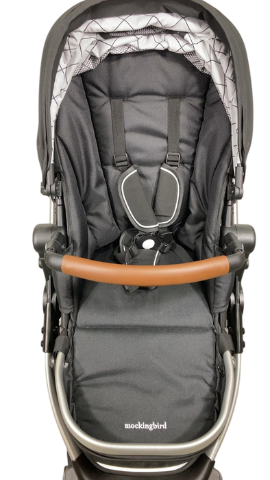 Mockingbird Single 2.0 Stroller, Black, 2023, Windowpane, Silver With Penny Leather