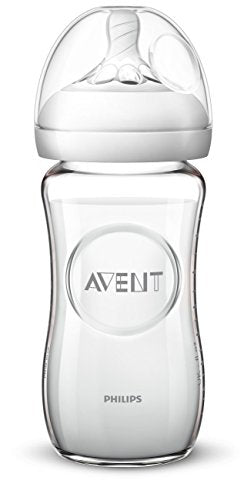 "This natural glass bottle is ergonomically designed for an easy grasp for both parents and babies. The wide neck makes filling and cleaning easy. Works with all Natural Philips Avent nipples and caps."