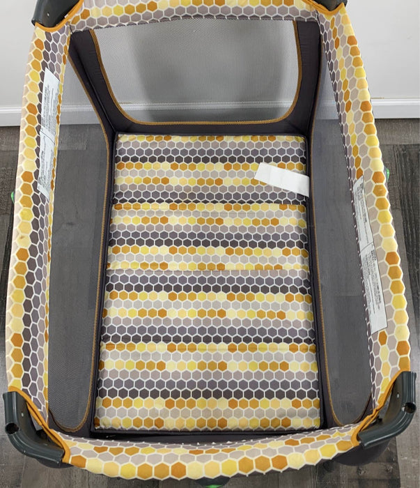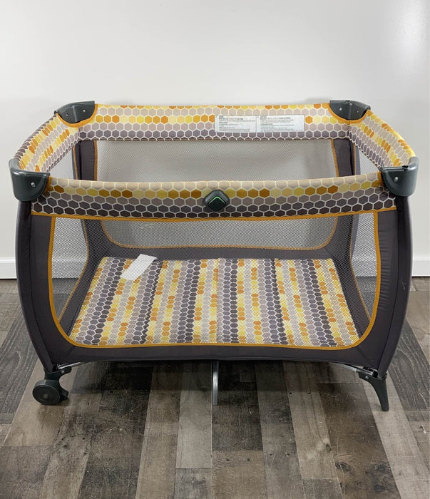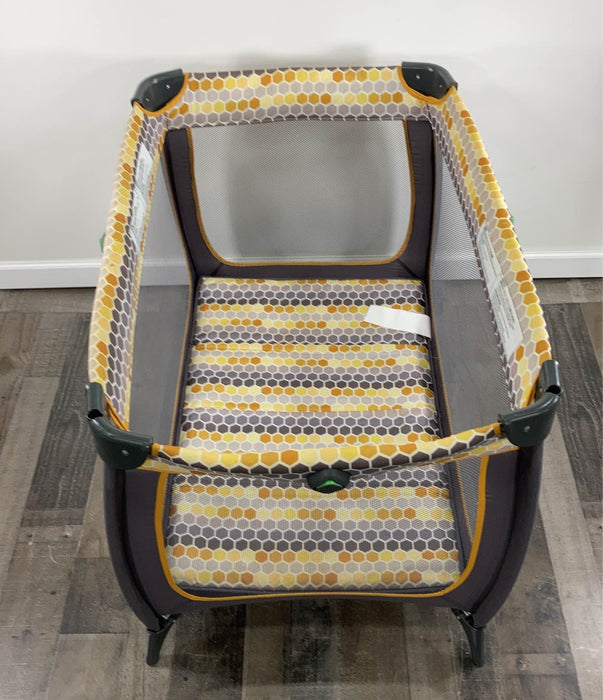 "Sturdy and portable, this is the perfect play yard for travel or at home! Features extra storage changing table and other must have items."