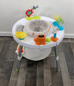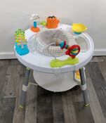 "This smart and innovative activity center was designed in collaboration with a pediatrician to support a "whole body" approach to play and learning. The unique discovery window allows babies to see their feet as they jump, reinforcing cause and effect. The toys can be positioned anywhere for the baby's enjoyment, the seat rotates 360 degrees, and the bouncing platform provides endless fun while also helping your baby build gross motor skills. Attach the keyboard toy to the bouncing platform and watch your little one's excitement as he learns to activate the lights and music with his feet! When your child outgrows the infant seat, the whole thing can convert into a sturdy table for coloring, playing, and more. Recommended for 4 months and up."
