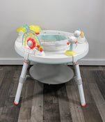 "This smart and innovative activity center was designed in collaboration with a pediatrician to support a "whole body" approach to play and learning. The unique discovery window allows babies to see their feet as they jump, reinforcing cause and effect. The toys can be positioned anywhere for the baby's enjoyment, the seat rotates 360 degrees, and the bouncing platform provides endless fun while also helping your baby build gross motor skills. Attach the keyboard toy to the bouncing platform and watch your little one's excitement as he learns to activate the lights and music with his feet! When your child outgrows the infant seat, the whole thing can convert into a sturdy chalkboard table for art fun!"